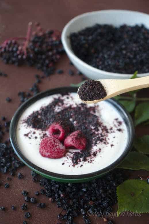 One of the best ways of preserving elderberries is to turn them into powder. In one teaspoon of this concentrated form packed with healthy nutrients is equivalent to a 100 g of fresh elderberries.